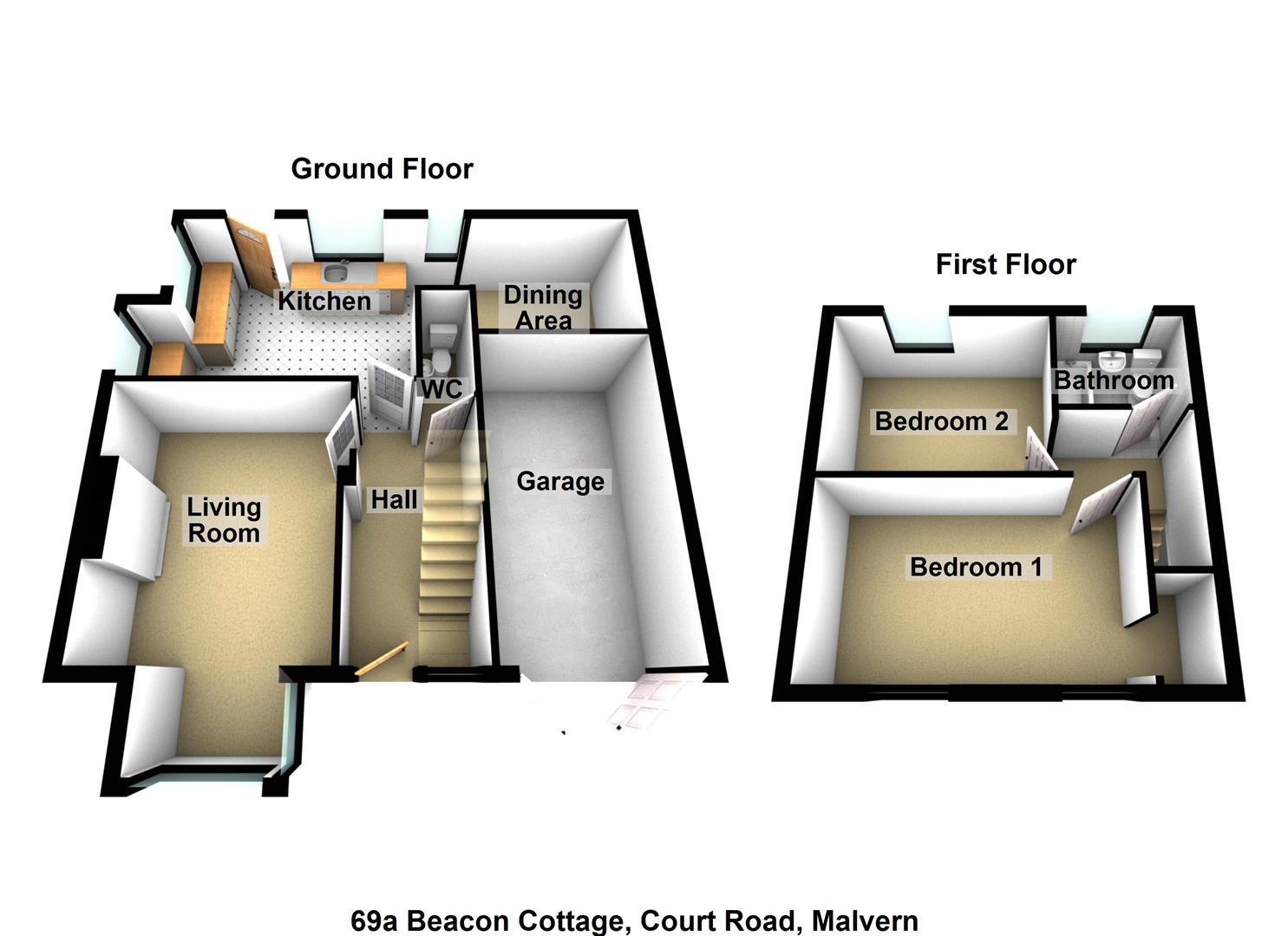 With restricted head height and double glazed window to the rear aspect providing views over playing fields to Bredon Hill. Radiator and spotlighting.
