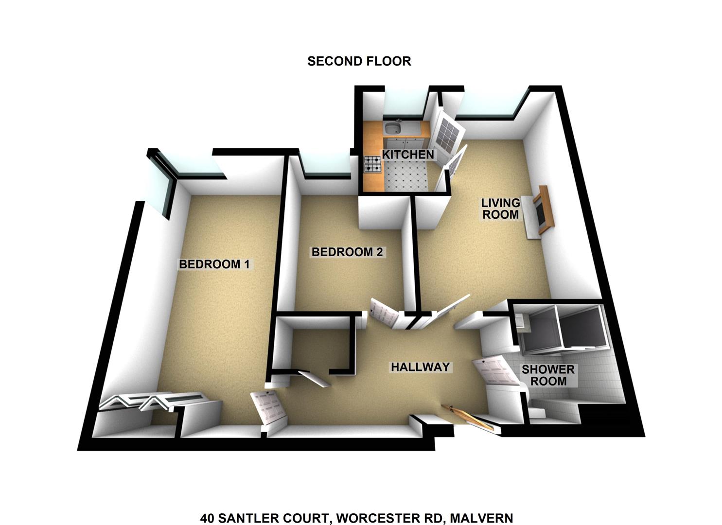 Located within the heart of Malvern Link, this well presented second floor retirement apartment provides bright and spacious accommodation with double glazing, and electric heating throughout. In brief the accommodation comprises a spacious reception hall, living room, recently re-fitted kitchen, two bedrooms and shower room.